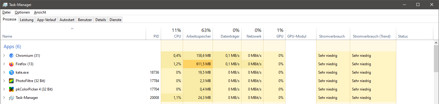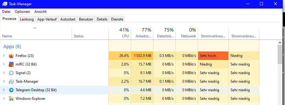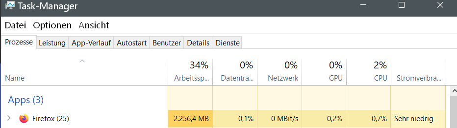 ich habe gemerkt, dass Firefox ab und zu im Taskmanager hohe Angaben anzeigt.