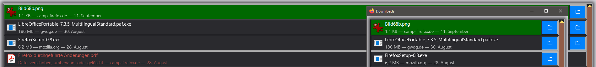 Ich habe mit diesem .css das TAb für about:downloads etwas bunter und für meine Augen angenehmer gestaltet:
