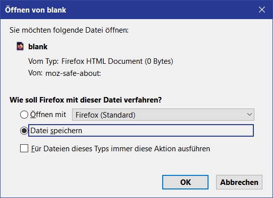 • Ich denke nicht, dass das mit dem ComputerBase-Forum zu tun hat. Das ist genau das Problem, bei dem Firefox aus heiterem Himmel automatisch 0-Byte-Dateien mit kryptischem Dateinamen herunterlädt (gibt auch einen anderen Thread irgendwo hier dazu, aber das Rätsel konnte nie gelöst werden), bloß dass hier auf Grund der Browser-Konfiguration ein Download-Dialog erscheint statt dass der Download direkt stattfindet. Ich hatte das jetzt über die letzten drei oder vier Monate bei sehr intensiver Nutzung auch insgesamt zwei Mal, zuletzt erst vor ein paar Tagen. Und ich bin nie im ComputerBase-Forum.