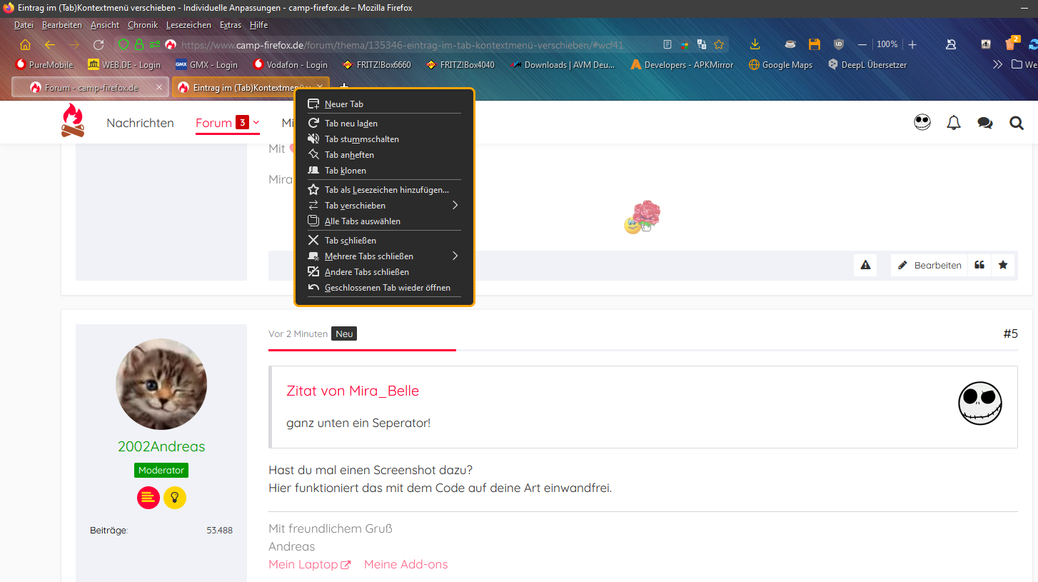 Ich hätte gerne einen Eintrag im Tabkontextmenü verschoben, nur bekomme ich es nicht hin.