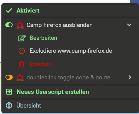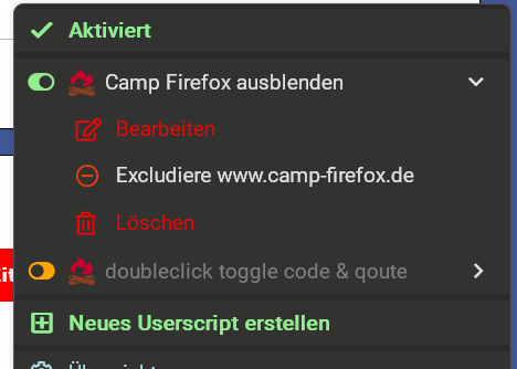Die IDs bei mir sind #i_XzA0ODBjMTBkLWY4YjgtNGFmNS1iYWVkLWY1Y2Q2NmM3NGM3Mw_edit_script respektive #i_XzA0ODBjMTBkLWY4YjgtNGFmNS1iYWVkLWY1Y2Q2NmM3NGM3Mw_delete_script. Die kryptische Zeichenkette wird bei dir eine andere sein. Wenn man die Erweiterung deinstalliert und neu installiert, ändert sich diese. Aber _edit_script und _delete_script am Ende sind immer gleich.