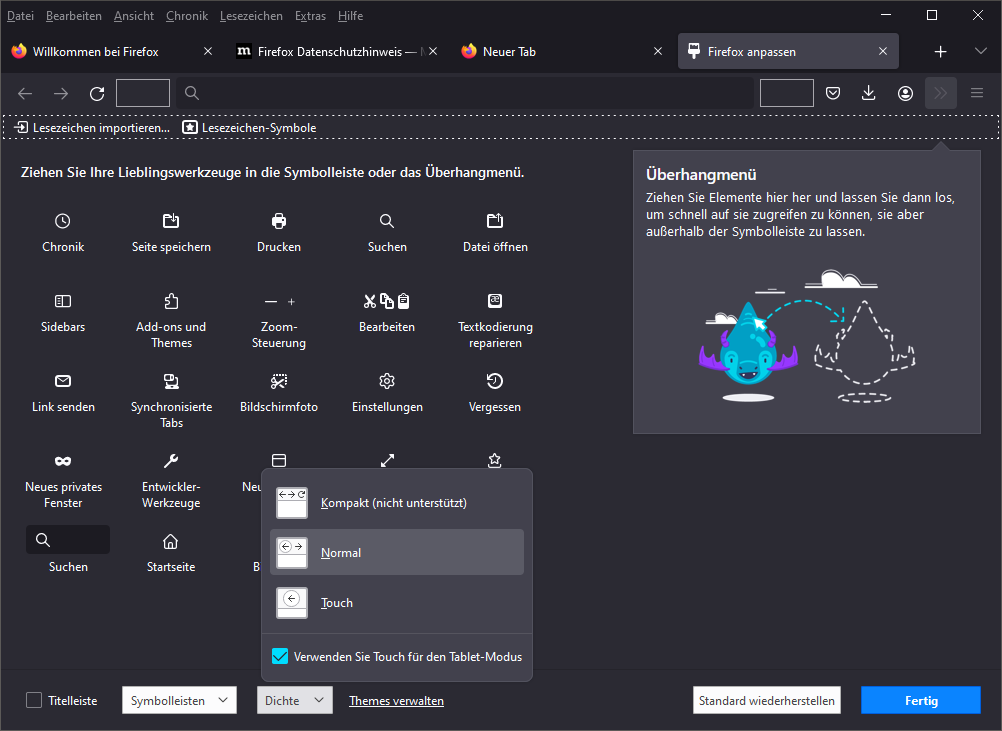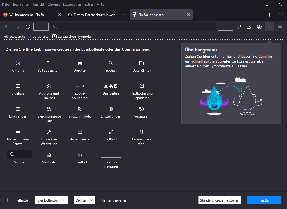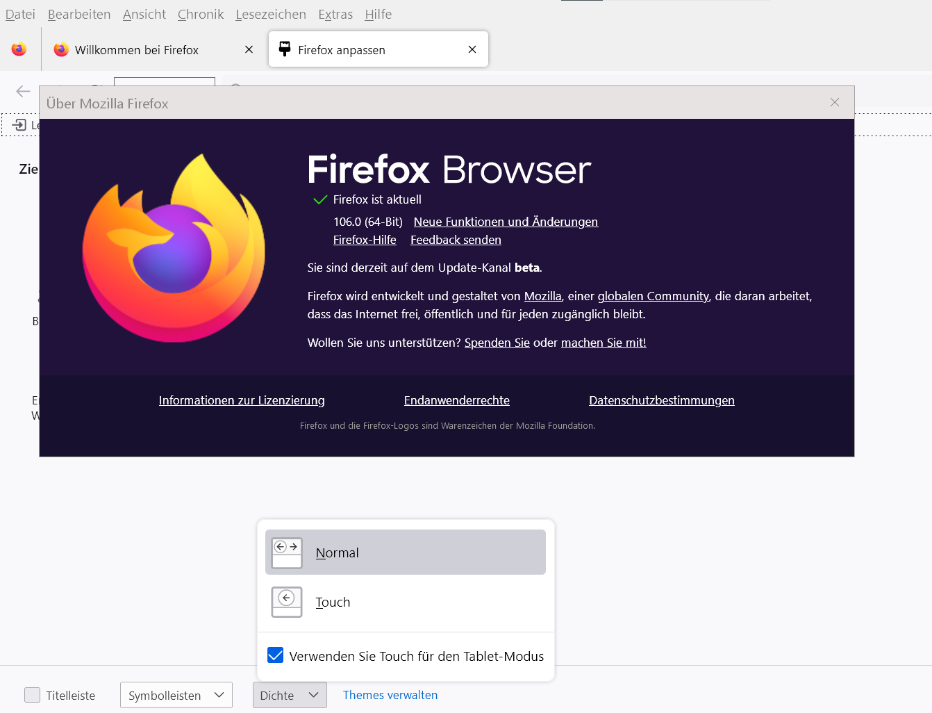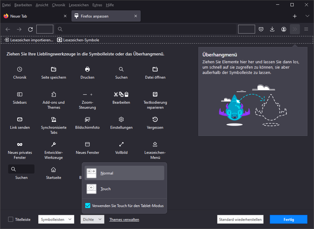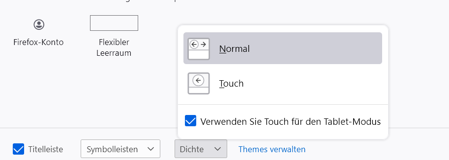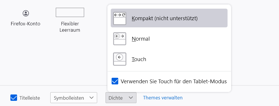 "Titelleiste", "Symbolleiste" und "Themes verwalten". Hat jemand einen Tipp, woran das