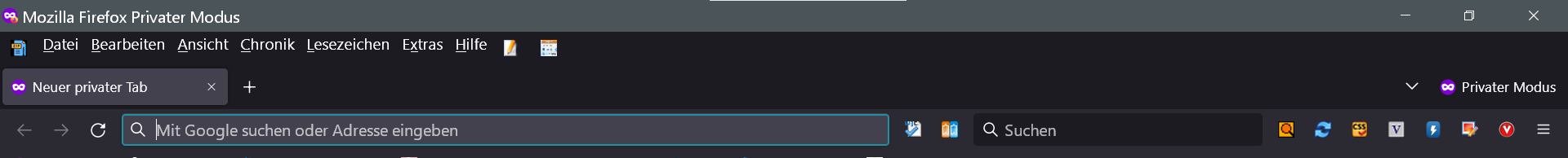 Der Hintergrund der Tab- und Menüleiste im privaten Fenster ist plötzlich schwarz, der Text im aktiven Tab weiß und somit nicht mehr lesbar. Ich bilde mir ein, dass das seit dem Update auf 106.0 so ist, vielleicht irre ich aber auch und es ist schon länger der Fall.