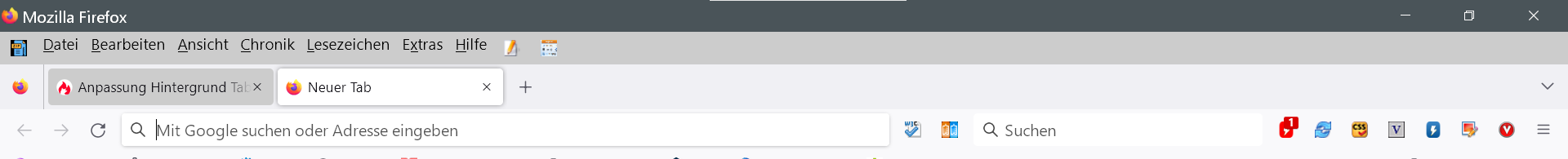 Die Farben der Tabs und Leisten im normalen Fenster hatte ich an meine persönlichen Vorlieben angepasst. Hier ein Auszug aus der userChrome.css hierzu: