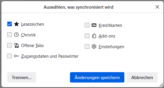 habe heute meinen neuen Laptop eingerichtet und dabei die Synchronisierungsmöglichkeit entdeckt. Wie praktisch, das würde ja jede Menge Zeit sparen... ich habe also Firefox Synchro auf altem und neuen Laptop in Firefox auf EIN geschaltet. Unter "Geräte" werden beide Laptops angezeigt. Allerdings synchronisiert Firefox gar nichts. Keine Lesezeichen, keine offenen Tabs, keine Passwörter, egal wie oft ich "Synchronisieren" anklicke und egal auf welchem der beiden Geräte. Was habe ich übersehen?