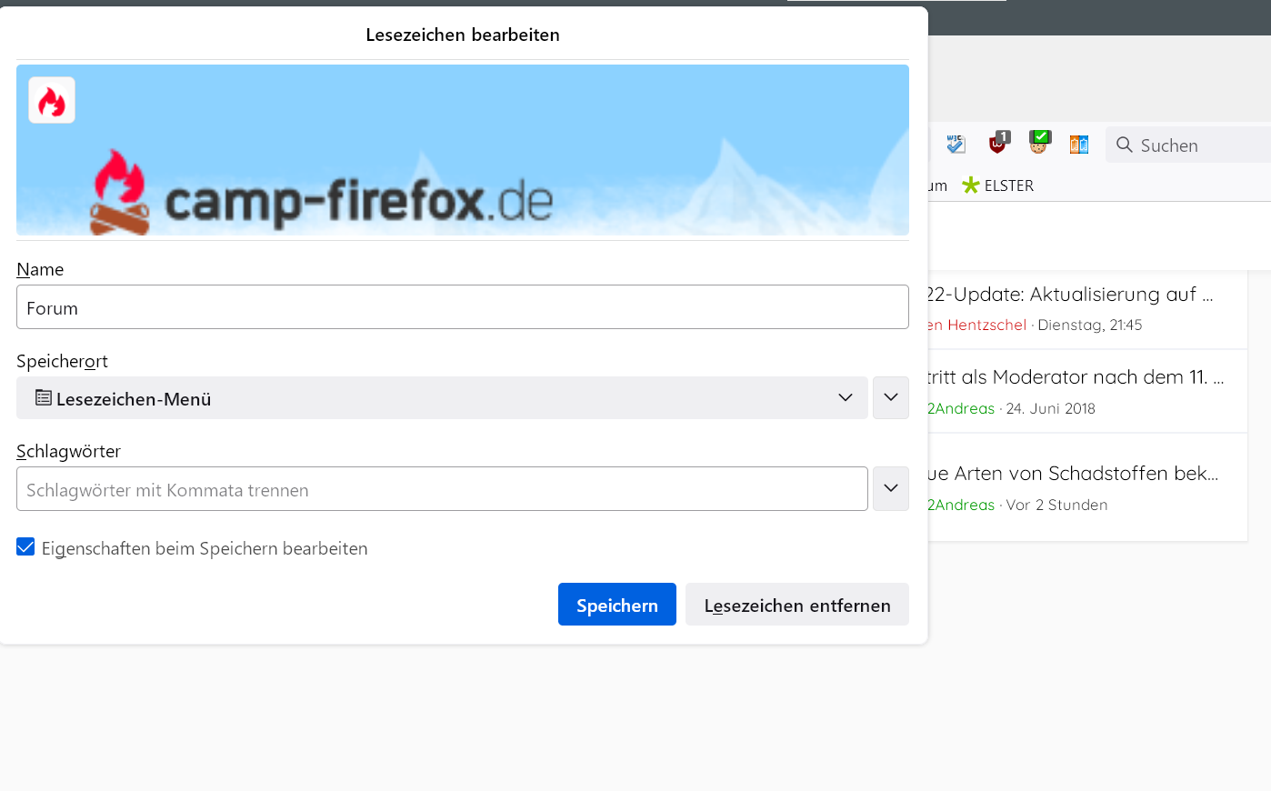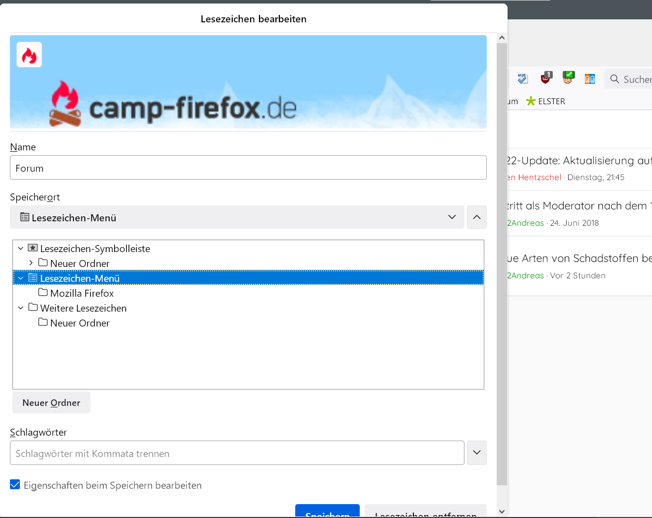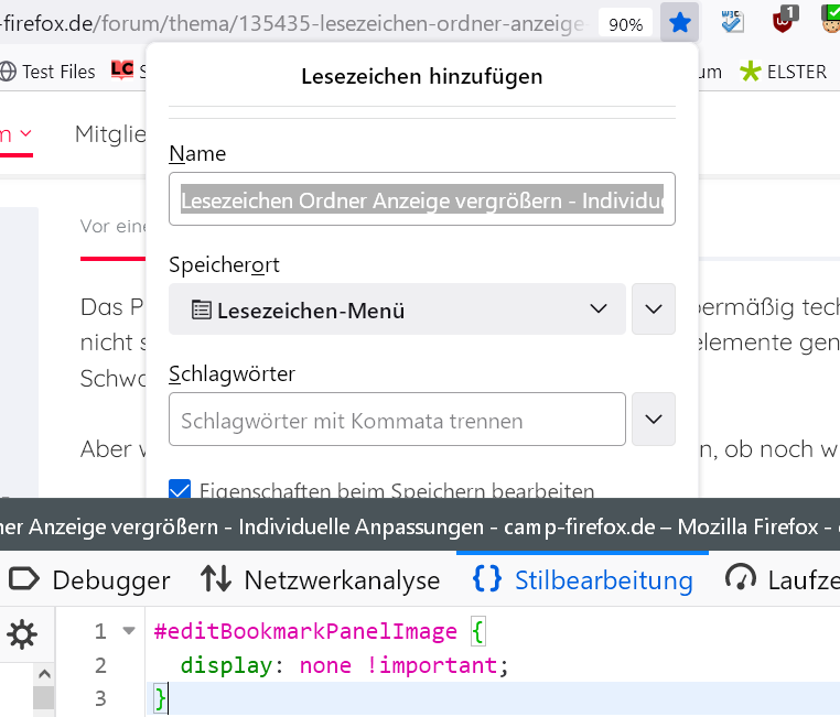 ich bin auf der Suche nach einer Lösung für die zu kleine Anzeige meiner zu zahlreichen Lesezeichen Ordner im Lesezeichen bearbeiten Bereich. Das Dropdown lässt sich leider nicht wie in Chrome vergrößern. Gibt es hier eine Möglichkeit mittels Einstellungen oder Add-Ons?