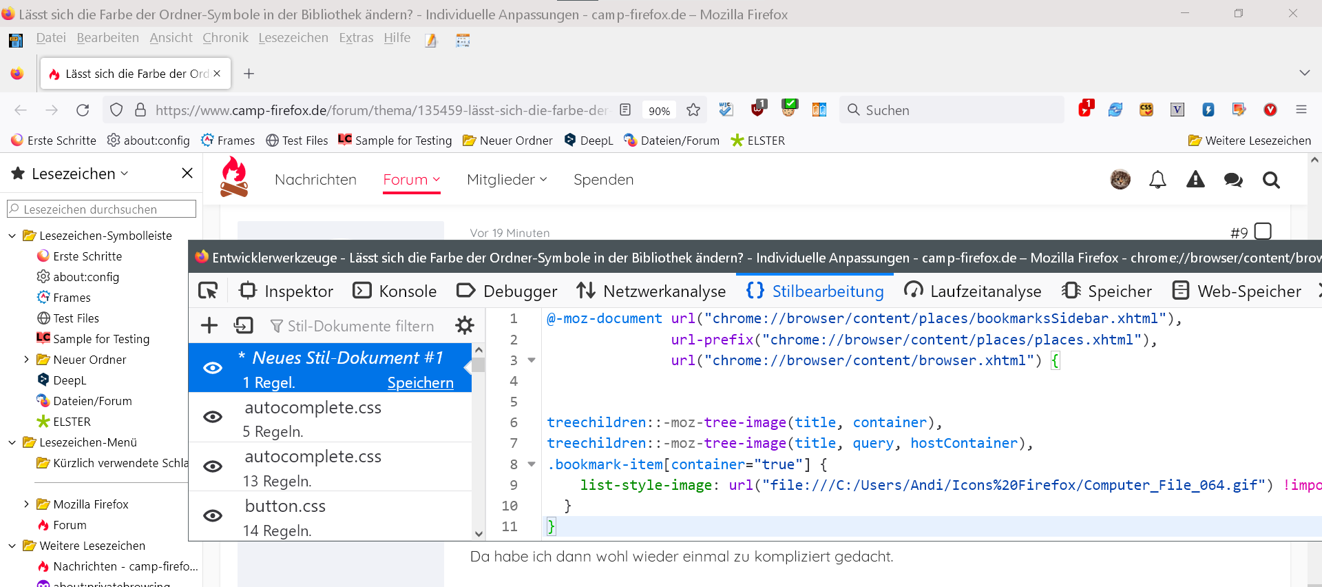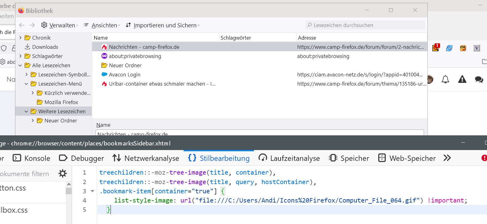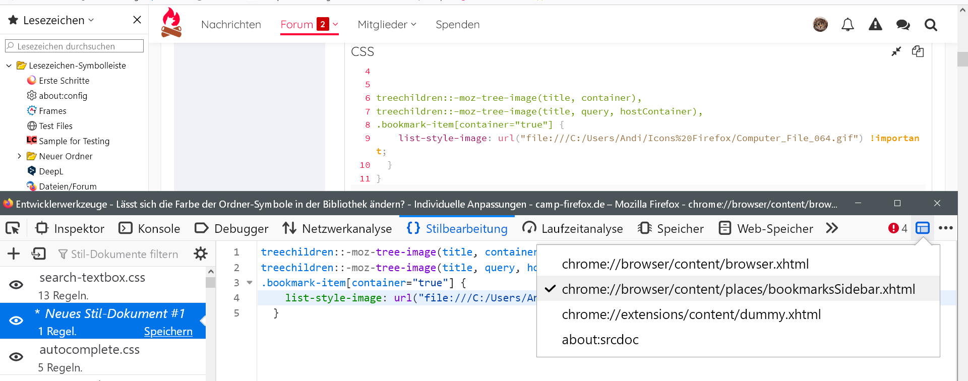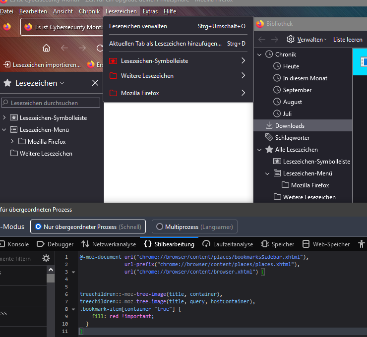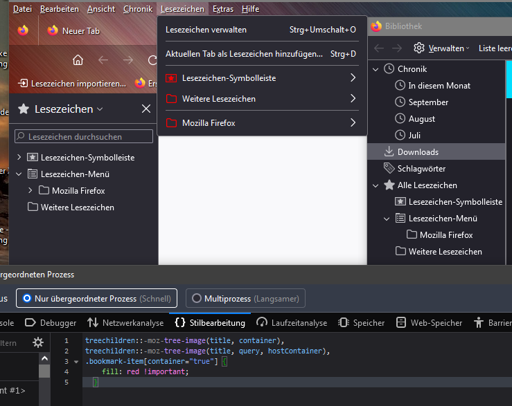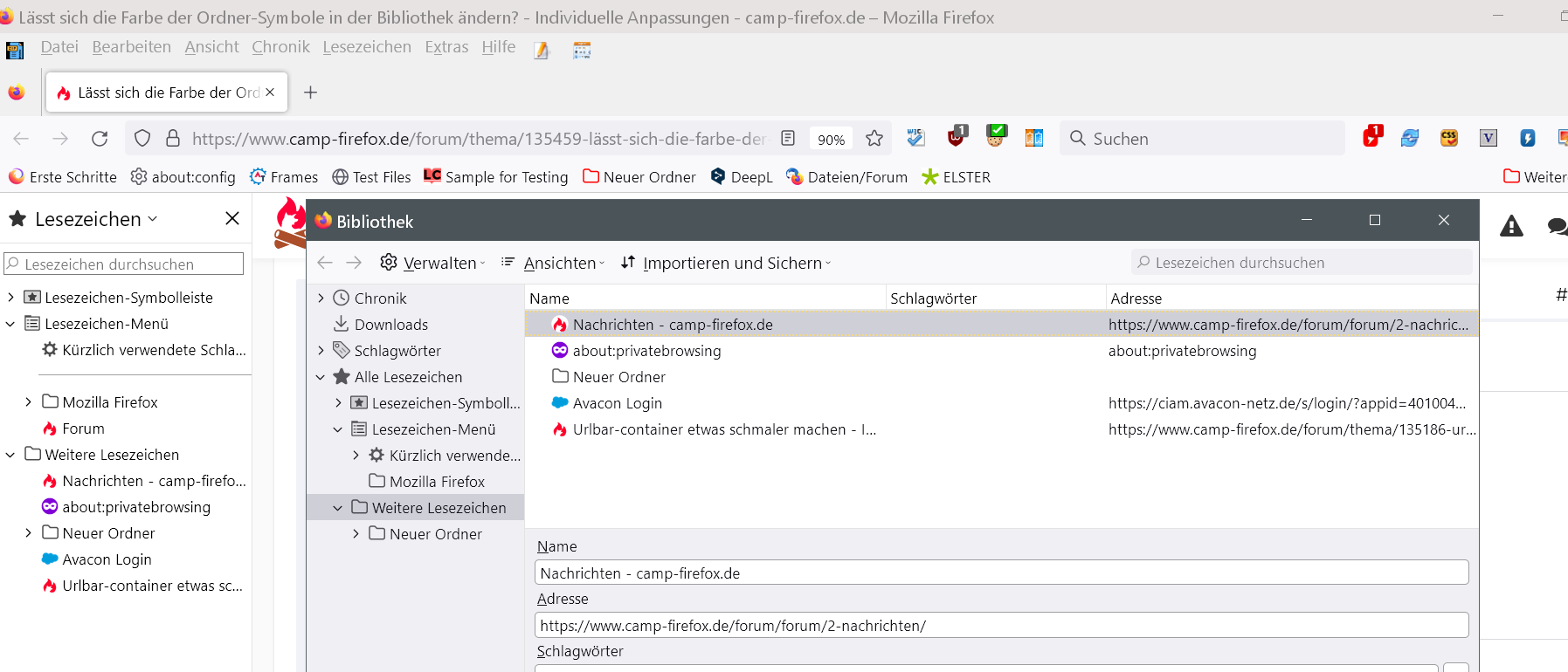 zusammen mit Lesezeichen aufgelistet sind. Ich hätte die Ordner daher gerne