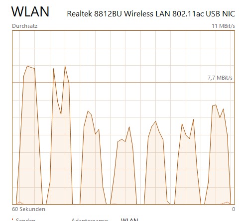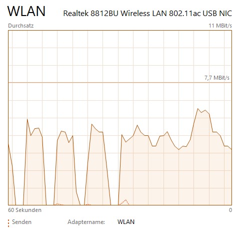 Auf den Bildern kann man sehen, dass die WLAN Verbindung immer wieder auf 0 geht.