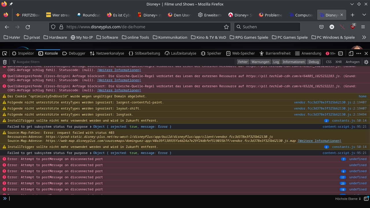 Im Sommer hat Disney+ noch gut funktioniert, jetzt kann ich weder Trailer noch Filme abspielen - der Screen bleibt schwarz, kein blauer Kringel.