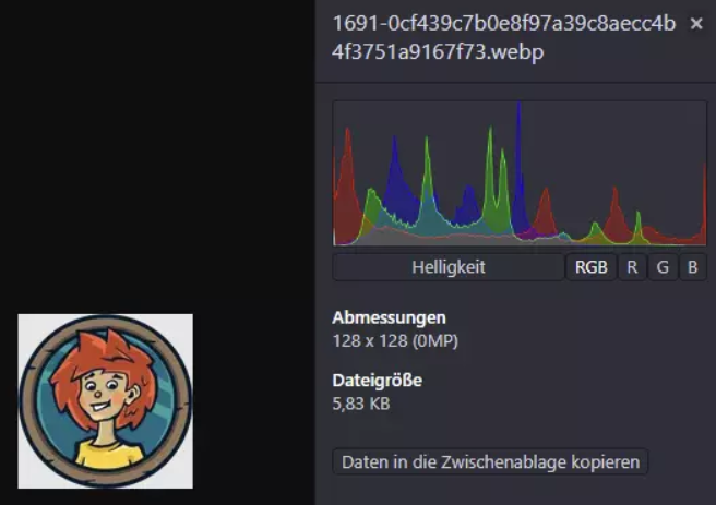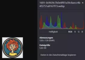 Wenn ich eine Grafik per Rechtsklick in einem neuen Tab öffne, dann gibt es in Vivaldi einen Info-Button oben rechts, über den ich per Klick einige Informationen, wie z. B. die Maße der Grafik angezeigt bekomme.