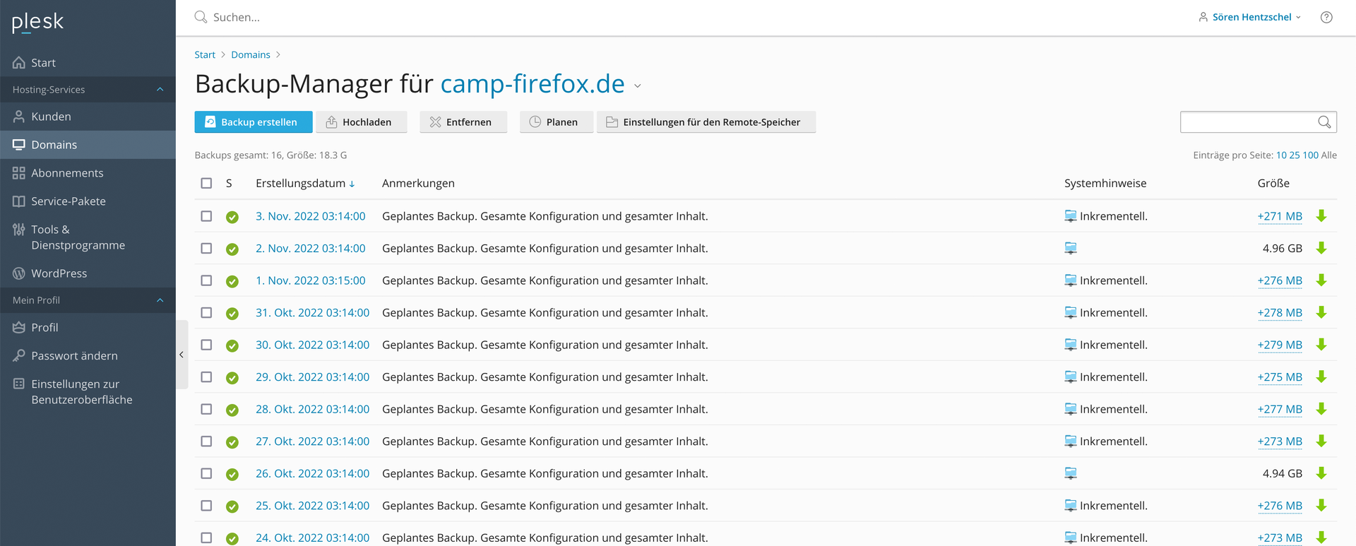 Der Screenshot zeigt jetzt nicht Windows, sondern Backups für camp-firefox.de: