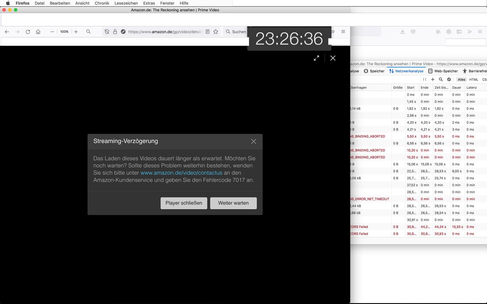 also wenn ich versuche bei Amazon einen Film zu schauen lädt das ganze manchmal Jahre (mal mit oder ohne Fehler von Amazon von wegen deine Verbindung ist schlecht), mal ganz schnell und mal gar nicht. Habe schon den Modus ohne Addons von Firefox probiert aber erfolglos. Achsooo und manchmal, wenn ich versuche ein Video zu streamen, kann ich parrallel keine andere Website im Firefox aufrufen.