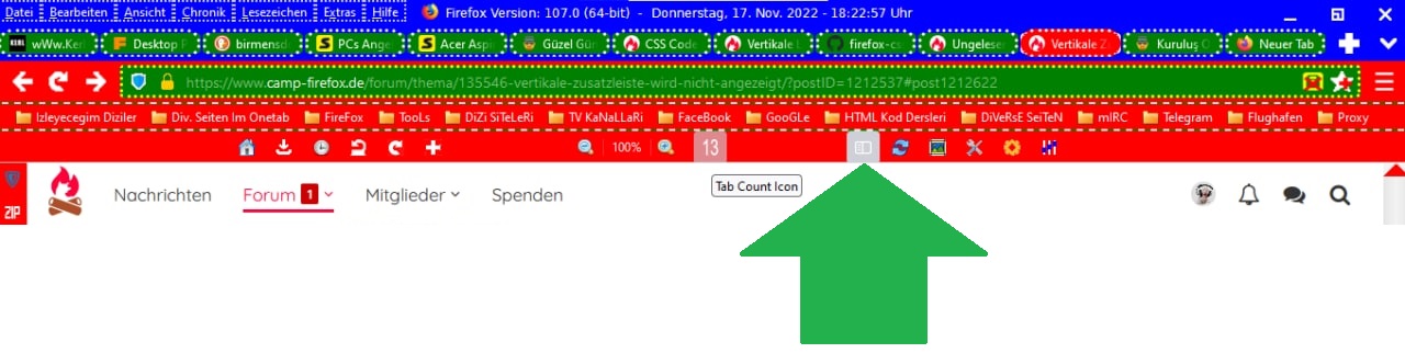 Ist es bei euch auch so, wenn ihr Firefox neustartet ist die vertikale Leiste nicht aktiv, man muss es selber aktivieren?