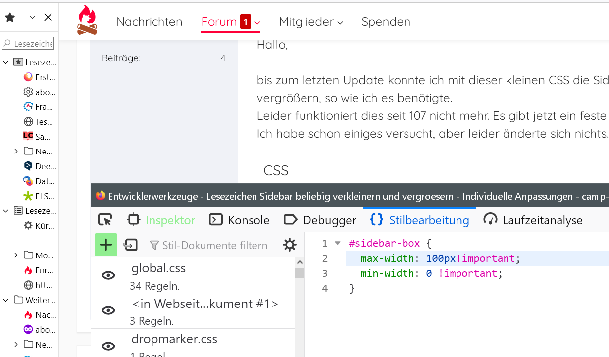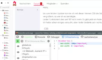 bis zum letzten Update konnte ich mit dieser kleinen CSS die Sidebar manuell von 0 bis xxx px verkleinern und vergrößern, so wie ich es benötigte.