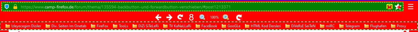 Ich hab versucht, die 2 buttons (back und forward) im anpassungs-fenster auf eine andere leiste zu verschieben, funkt aber nicht.