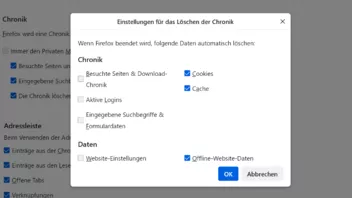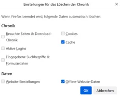 • die Lösch-Checkboxen in "Chronik" und "Cookies und Websiten" sind identisch.