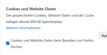 ich habe diverse Beiträge gelesen in denen Ausnahmen vom generellen Löschen der Cookies besprochen werden. Leider funktioniert es auch bei mir nicht. Zum Einen, die Lösch-Checkboxen in "Chronik" und "Cookies und Websiten" sind identisch. Wenn ich eine ein- oder ausschalte ist die andere genauso.