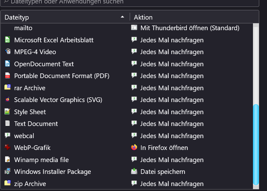 wie du Firefox für diesen Typ von Datei konfiguriert hat