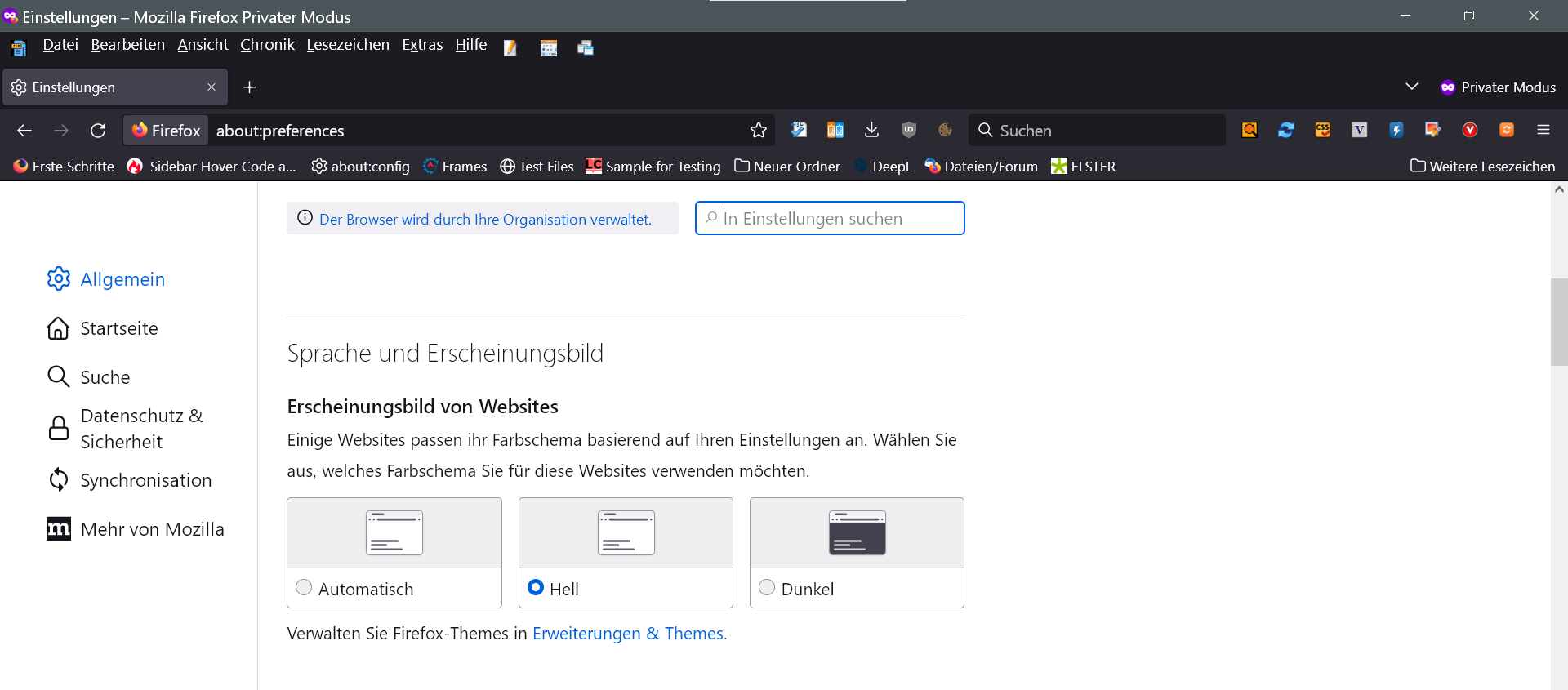 vorab: Ich habe das Thema bei Mozilla recherchiert und auch im Forum nach passenden Themen gesucht. (Suchbegriffe: Privater Modus Dunkelmodus, Dunkelmodus deaktivieren, etc.)