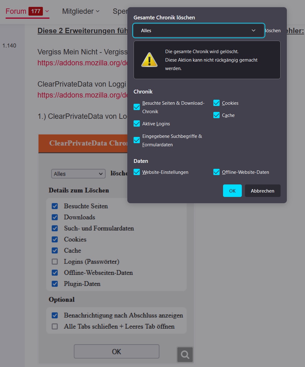 Vergiss Mein Nicht - Vergiss Cookies und andere Daten 2.2.8