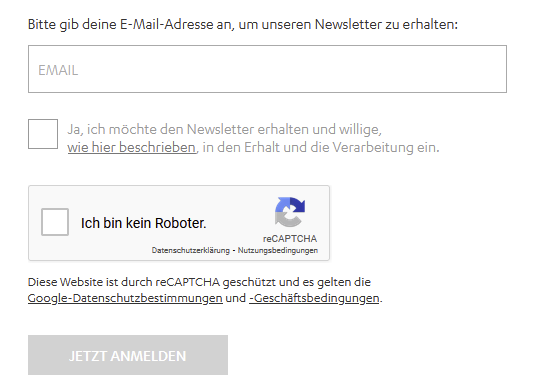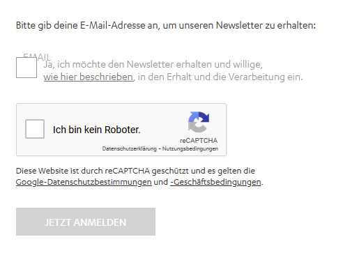 Hier ist es mir mit aktiviertem uBlock Origin nicht möglich, mich für den Newsletter anzumelden.