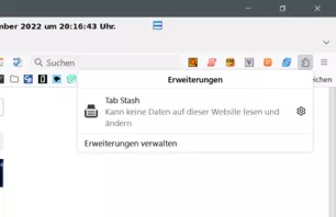 Bei mir werden auch nicht alle installierten Erweiterungen im PopUp angezeigt - vielleicht hat es damit zu tun...