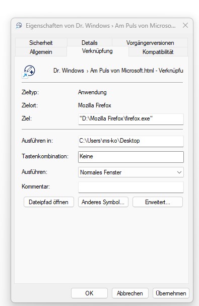 Internetprogramme - Dr. Windows Verknüpfung beim Starten eines Firefox-Fensters