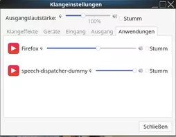 Wenn ich den entsprechenden Regler zu Firefox (Systemeinstellung von Linux) auf 100% schiebe (wie den unteren Schieberegler) ist wieder alles in Ordnung - bis ich Firefox neu starte. Dann fällt er sofort zurück auf die im Bild dargestellte Lautstärke zurück.