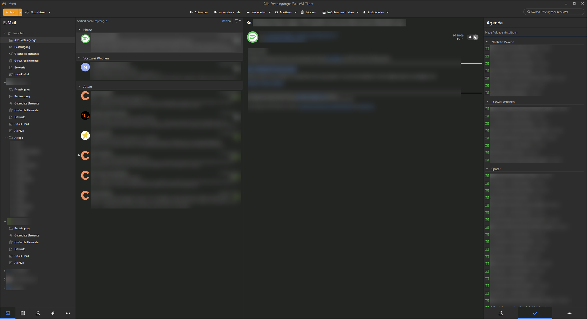 • TB sieht mit der 3-Spalten-Ansicht aber nicht schlecht aus. So habe ich das aktuell auch bei mir im eM Client. Allerdings ist meine rechte Seitenleiste etwas breiter ...