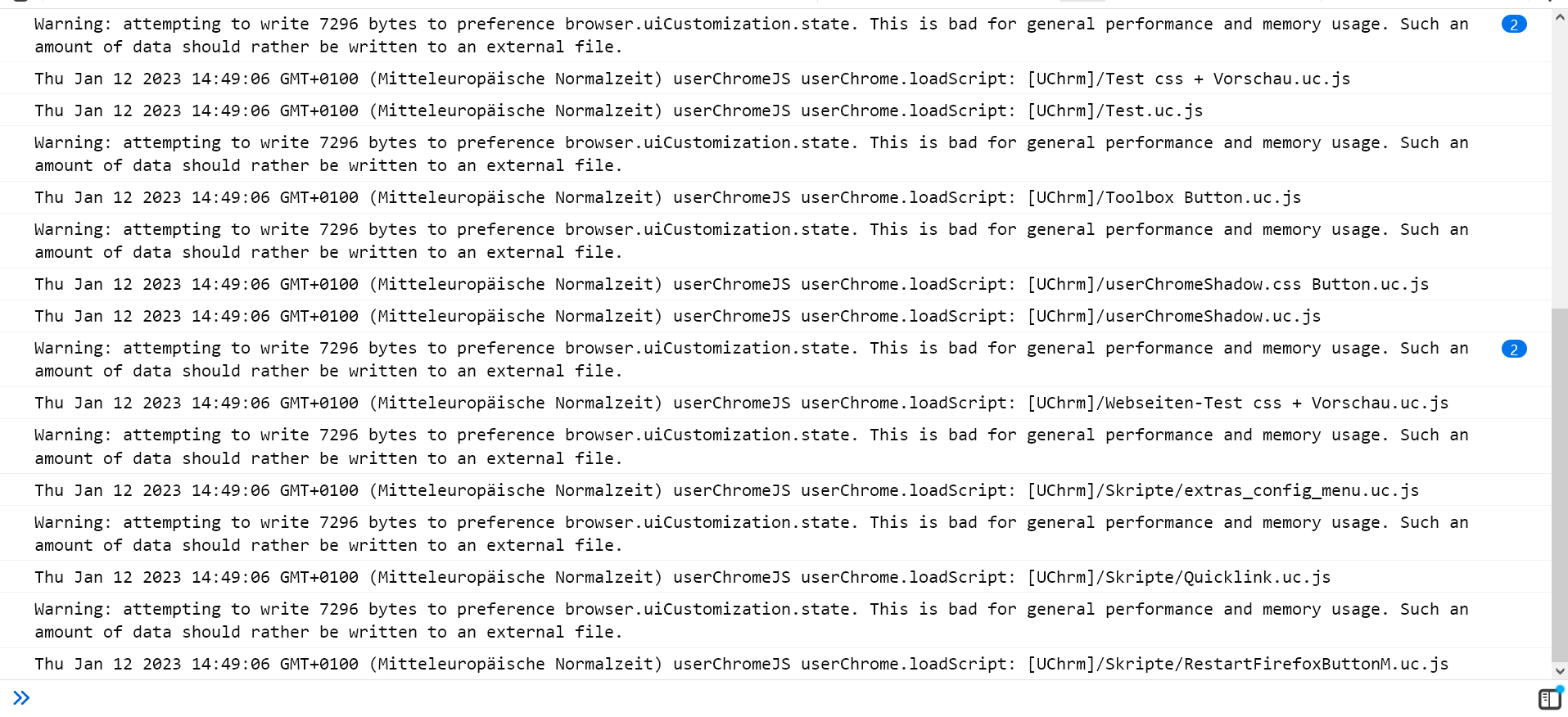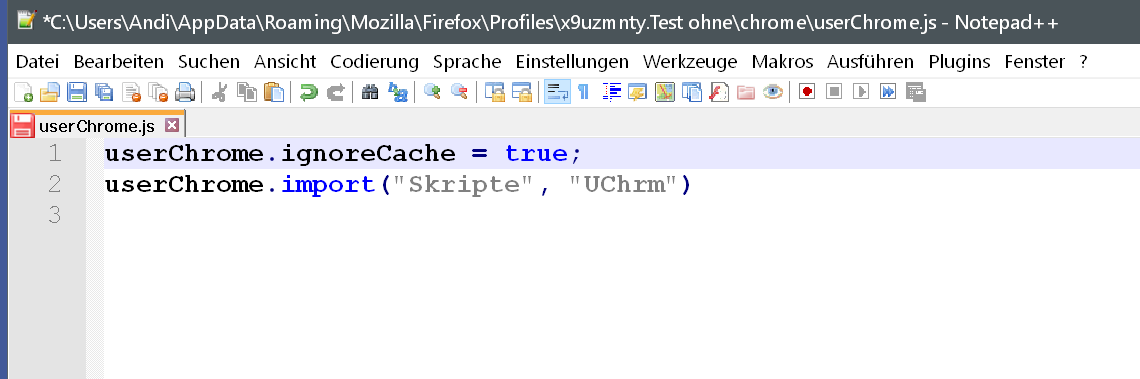 Der Eintrag userChrome.import("*", "UChrm") verweilt nur deshalb noch in der userChrome.js,