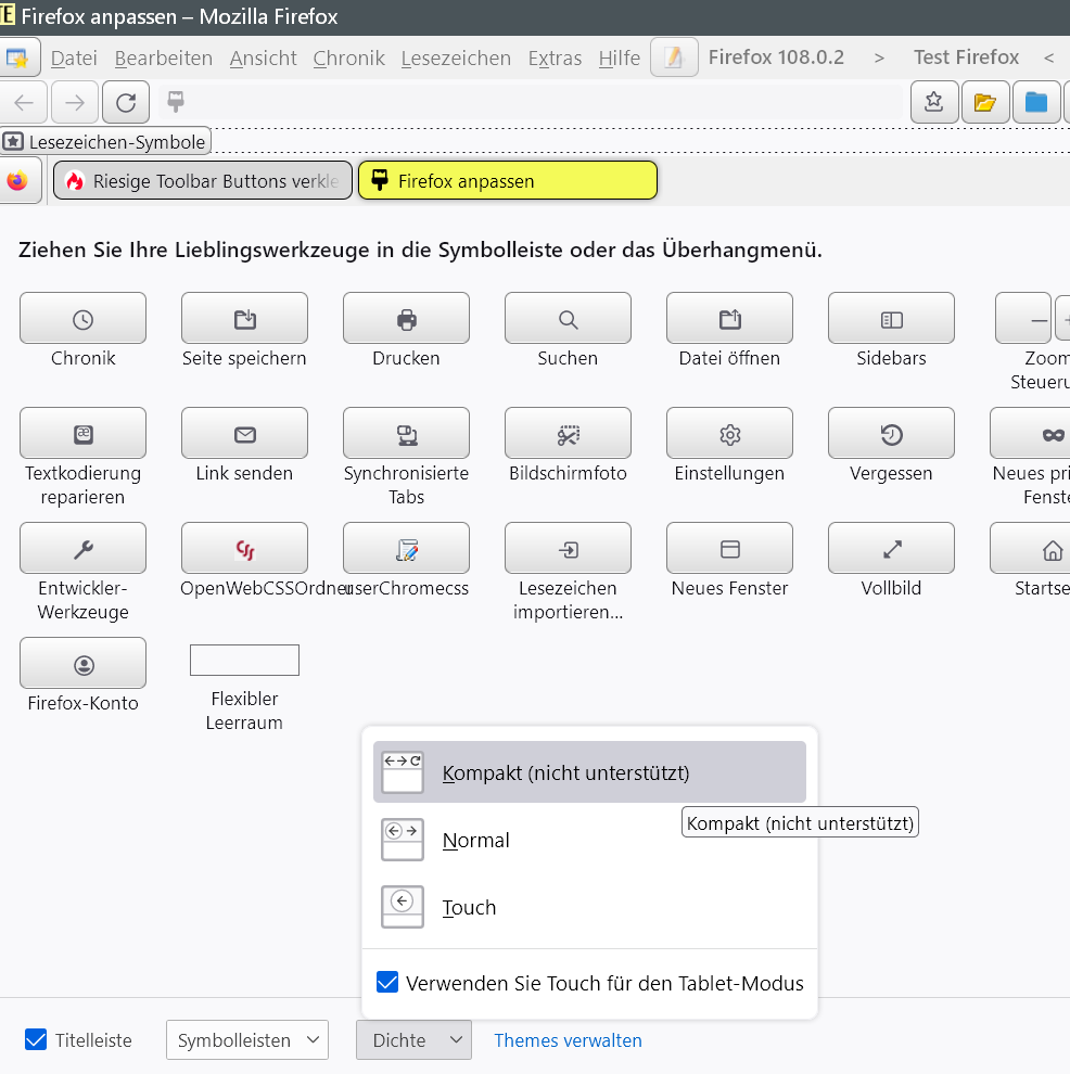Ich verwende um die Buttons mit sichtbaren Rand zu bekommen in der userChrome.css:
