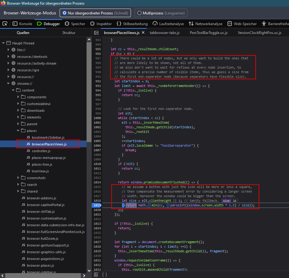 Die entsprechende Zeile befindet sich in der browserPlacesView.js in Zeile 1019, siehe Screenshot: