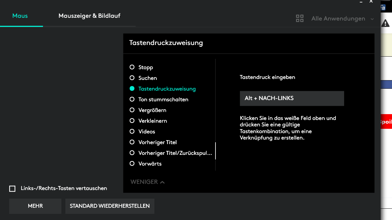 musste leider feststellen, dass meine Maustaste für ZURÜCK (um auf die vorige Seite zu kommen ) nicht mehr funktioniert. Es ist eine Logitech MX Master 3.