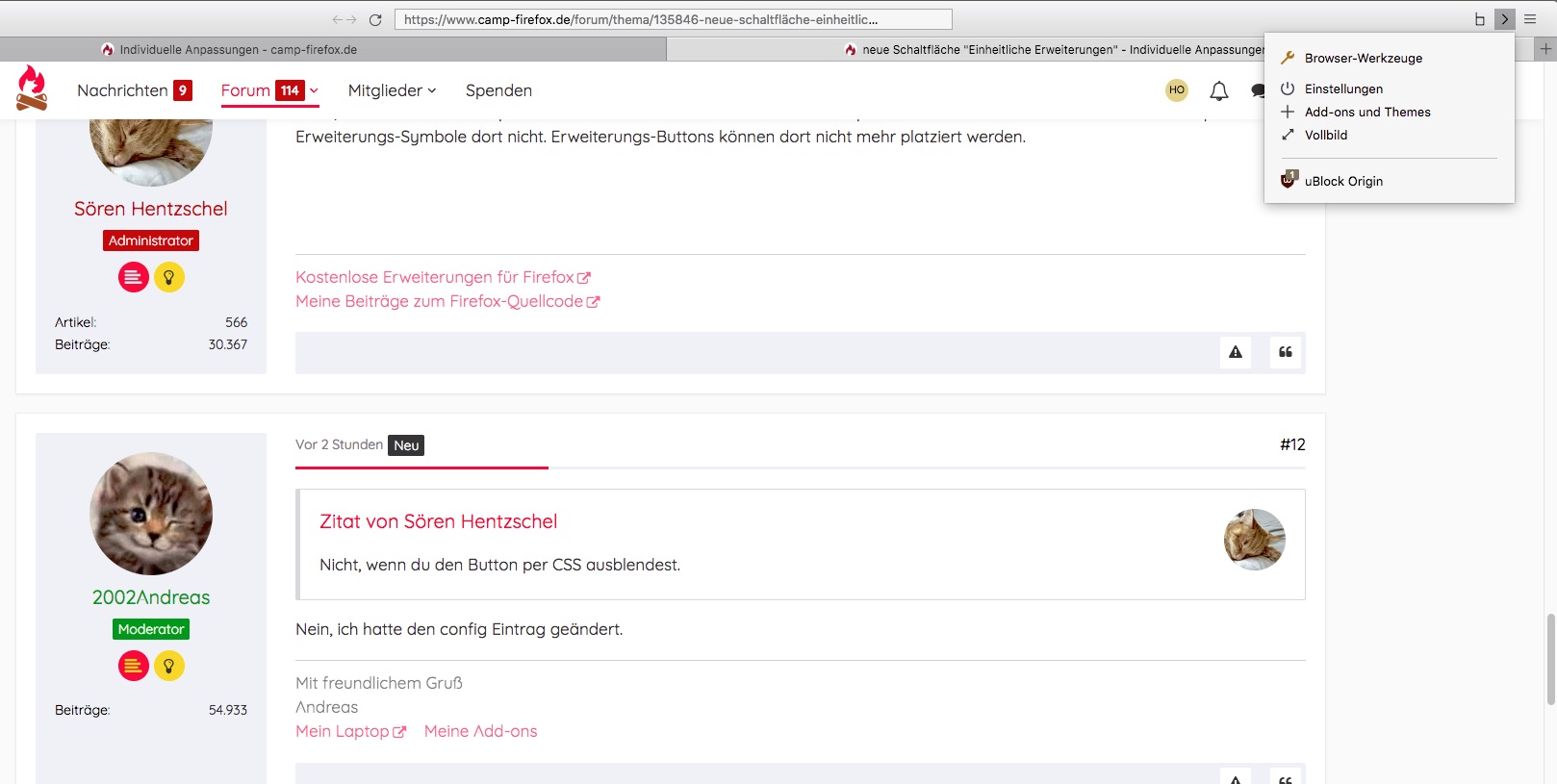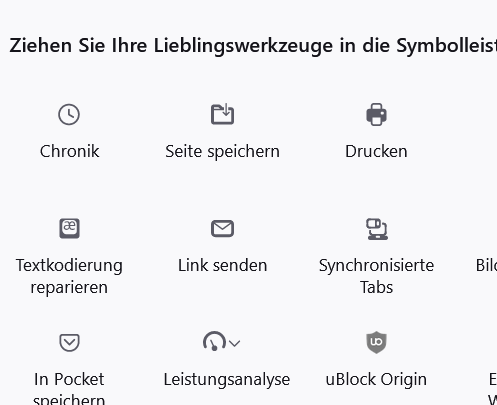 nur zur Klarstellung, und weil das 'Gerücht' schon seit einiger Zeit umgeht - ist es in 109 so, dass man generell Erweiterungen( -Buttons ) nicht mehr in das Overflow-Menu verschieben kann