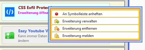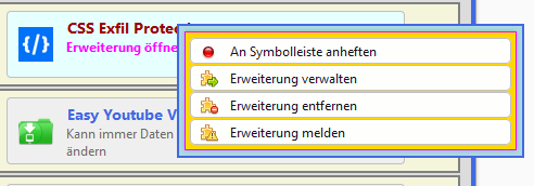 Da ich bis dato schon einen Button für den Direktzugriff auf die Erweiterungsseite hatte, ändert sich für mich (vorerst) nur, dass ich ich nun zwei Klicks tätigen muss um zu den Erweiterungen zu gelangen, richtig?