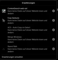 • Mag alles sein, doch ich glaube früher oder später wird der Punkt Erweiterungen unter about:addons wegfallen