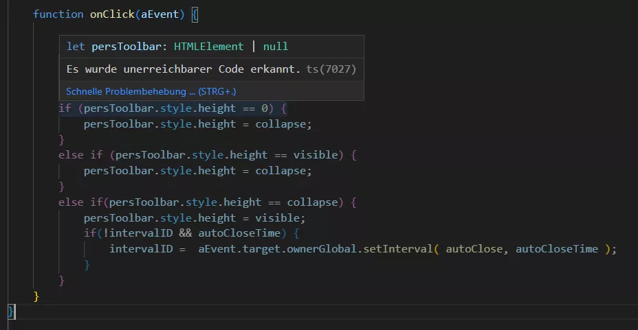 Ganz und gar nicht „Bingo“. So hat das Script überhaupt keinen Code, der jemals ausgeführt wird. Wenn man sich die äußerste Bedingung ansieht, dann wird dort auf aEvent.button != 0 geprüft. Es gibt keinen Code, der ausgeführt wird, wenn die Bedingung nicht zutrifft. Und wenn die Bedingung zutrifft, wird durch das return die Funktion sofort verlassen, alles darunter ist also toter Code. Ich weiß auch nicht, worauf visoer hinaus möchte…