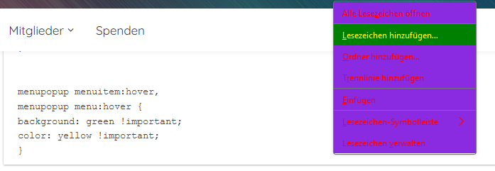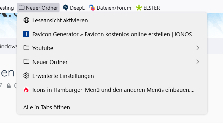 • Es geht nur um die Lesezeichen-Symbolleiste und dort um die von mir angelegten Ordner.