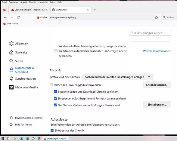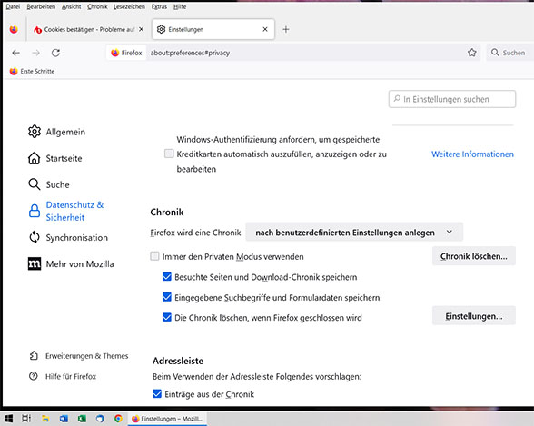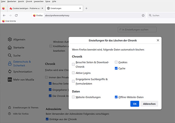 Und dann bitte in diesem Profil alle Einstellungen bezüglich Cookies erneut überprüfen.