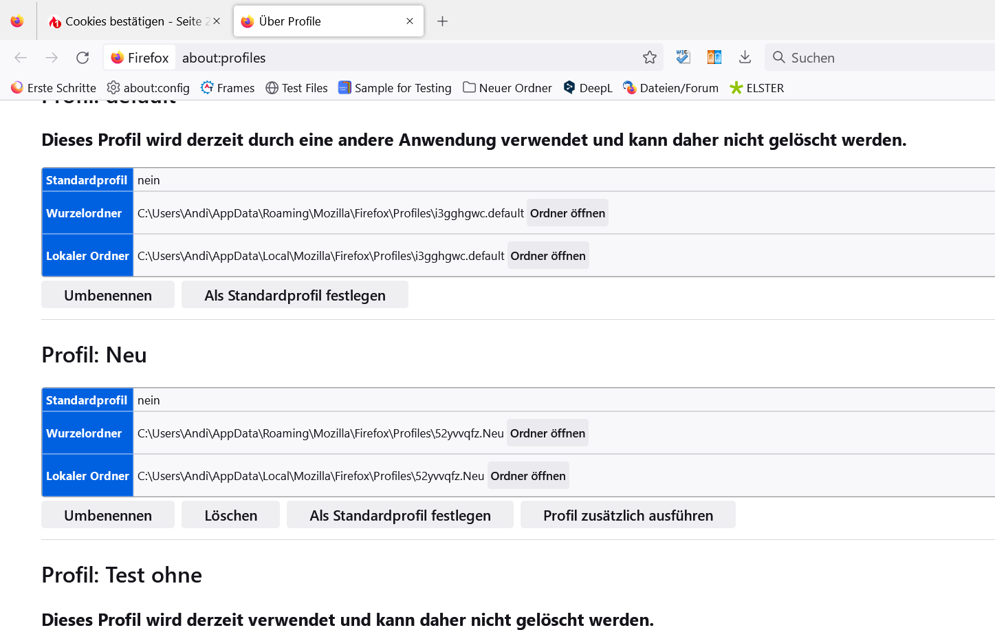 Aber ich habe einen Firefox ohne meine Lesezeichen.