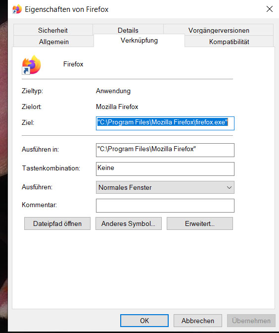 Suche mal bitte die Firefox-Verknüpfung auf dem Desktop. Klicke mit der rechten Maustaste darauf und wähle aus dem Kontextmenü den Eintrag „Eigenschaften“ (ganz unten). Im erscheinenden Fenster gib bitte mal in der Zeile Ziel: ganz am Ende -p ein und klicke danach auf die Schaltfläche OK unten im Fenster. Nachdem das Fenster geschlossen ist, starte Firefox über diese Desktop-Verknüpfung. Jetzt erscheint vor dem Start von Firefox erst der Profilmanager, der die vorhandenen Profile anzeigt. Starte Firefox mit einem Profil und teste. Ist dort nicht das Gewünschte, beende Firefox und starte ihn erneut über die Verknüpfung, wähle aber ein anderes Profil aus. Wenn du Glück hast, findest du dein altes Profil mit der gewünschten Einstellung.
