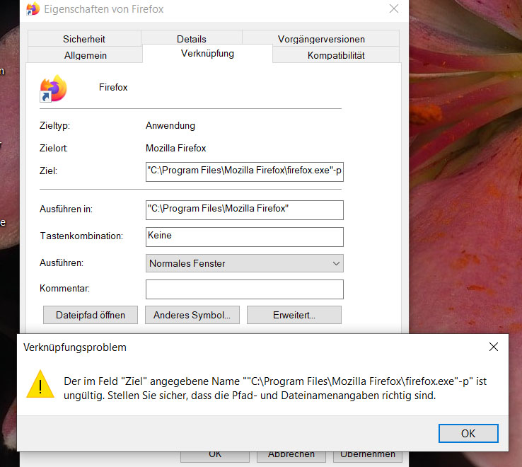 Jetzt habe ich noch ein neues Profil angelegt und das alte gelöscht. Aber das Problem besteht immer noch.