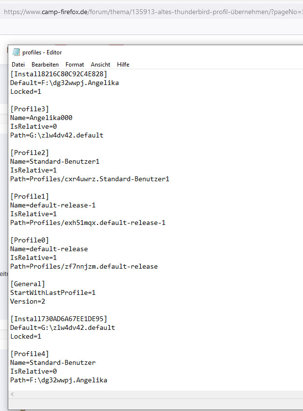 Der Profilmanager (Thunderbird/Firefox) ruft seine profiles.ini auf.