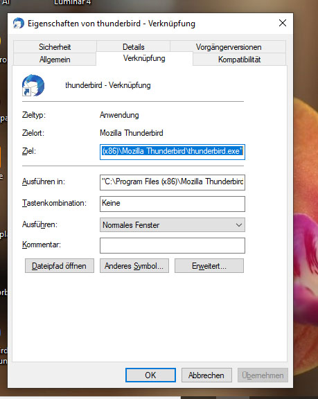 • Ob die Verknüpfung zu Thunderbird auf em eigenen Desktop liegt, kann man im Explorer ganz leicht prüfen.