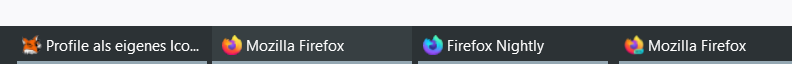 Wie Andreas schon schrieb, gibt es pro Firefox nur genau zwei Profile, die man mit dem genannten Schalter als Symbol unetrscheidbar machen kann. Bei 4 Profilen ist das nicht möglich, nur mit zwei weiteren parallelen Installationen mit anderen Symbolen wie erwähnt. Der Schalter (false) im about:config würde aber wieder keine Unterscheidung anzeigen, weil Standardsymbol. Und bei 3 Installationen kann man sich Firefox auch gleich 4 Mal installieren.