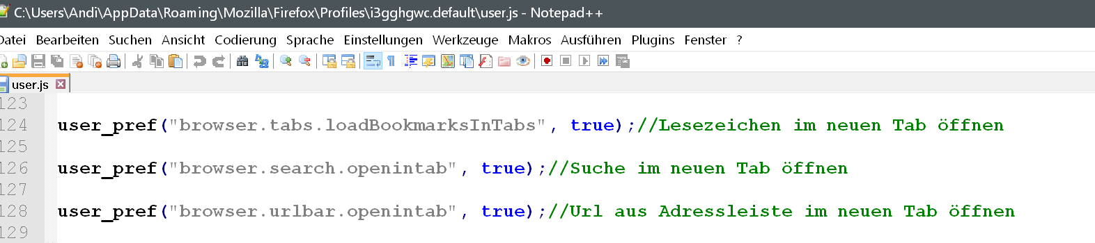 Ich hab in about:config im neuen Profil nicht mehr geändert.