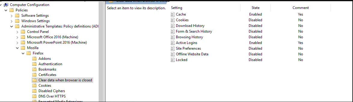 ich suche die Option über eine GPO die Einstellungen der Chronik zu ändern. Also unter Datenschutz & Sicherheit. Ich hätte erwartet, das hier z.B. zu finden. (03.png).
