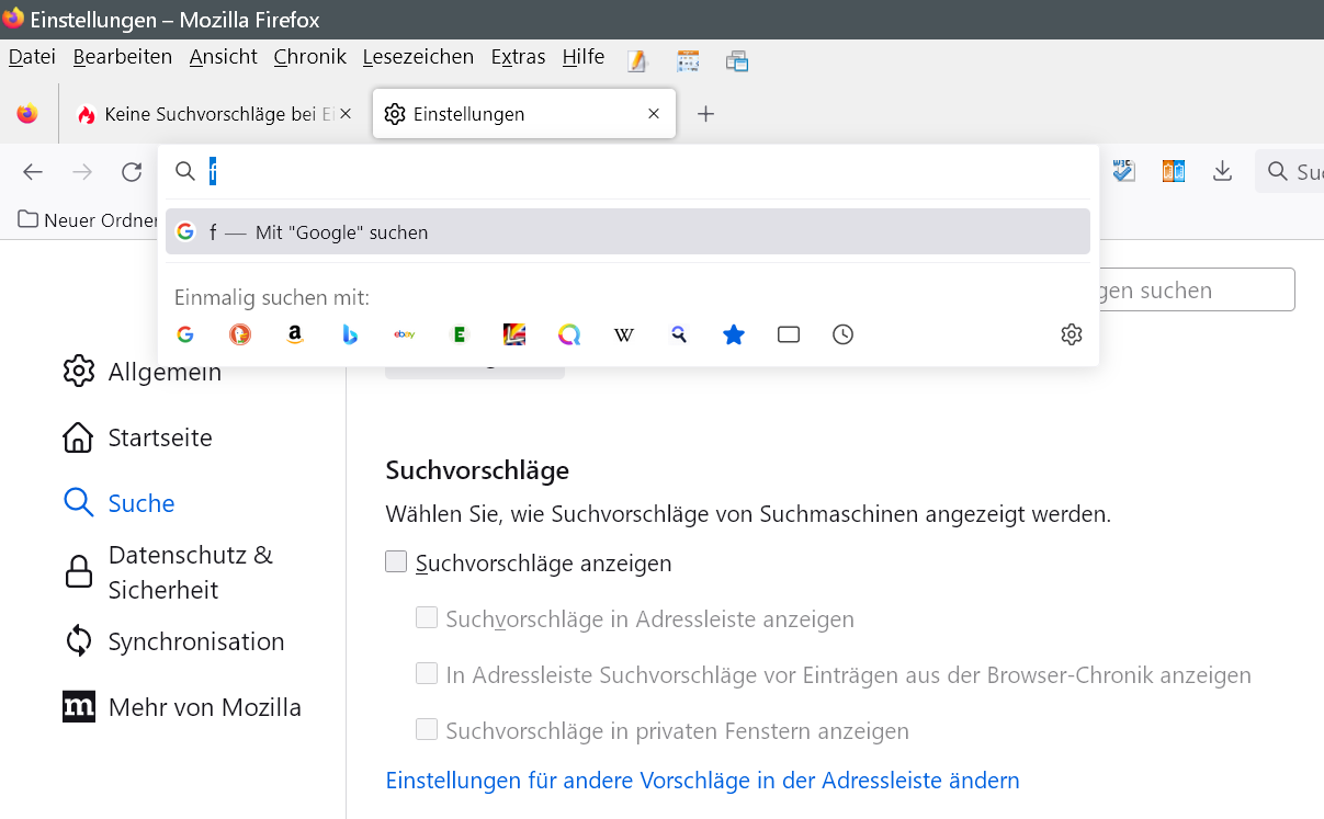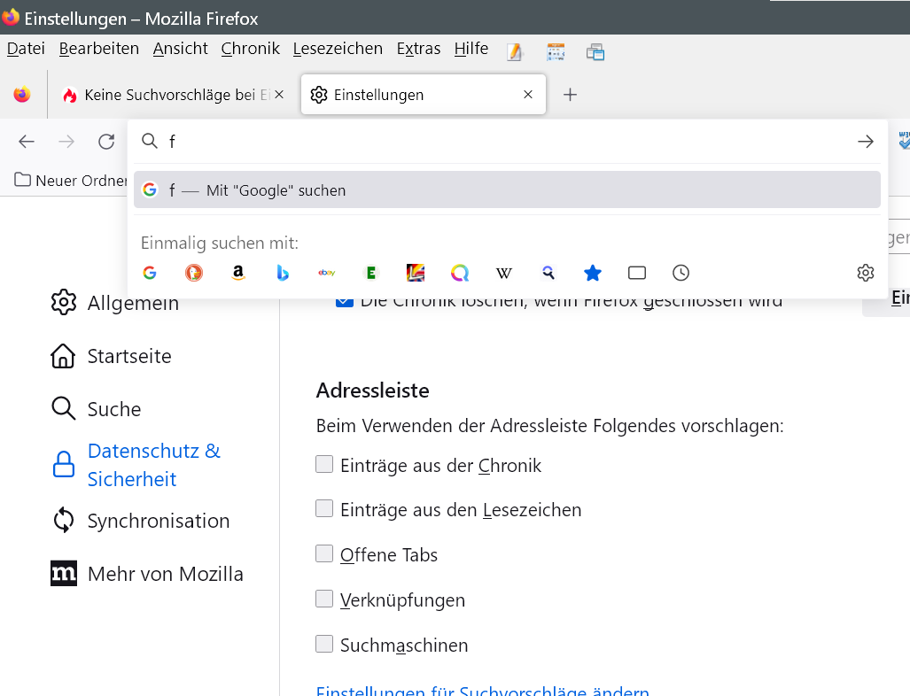 ZitatKeine Suchvorschläge bei Eingabe in Adressleiste