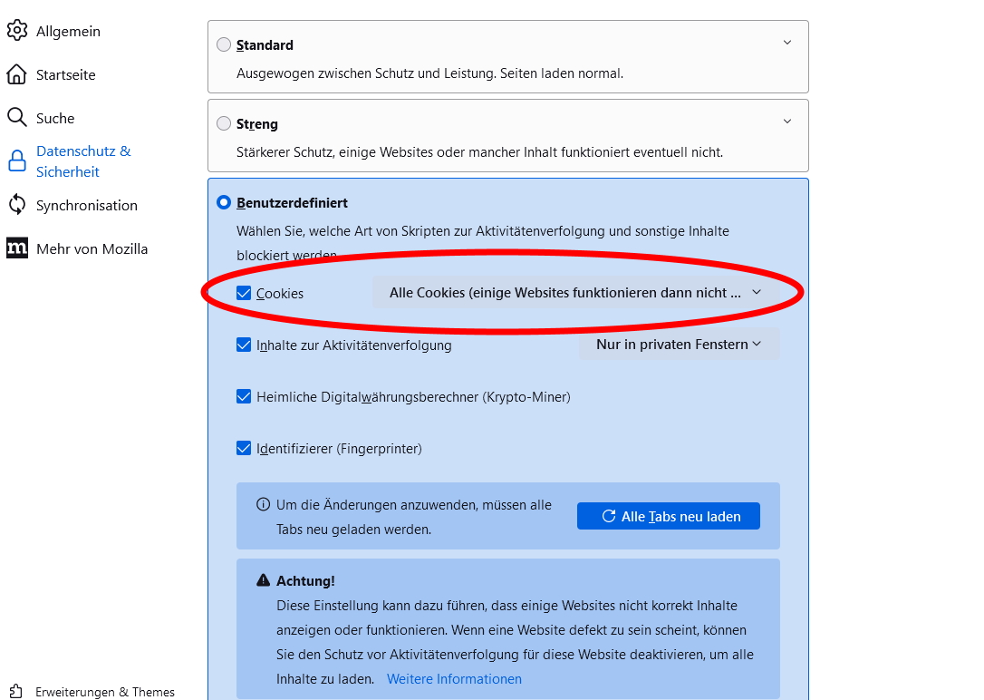 Ich verstehe auch nicht, was so unklar sein soll. Es gibt eine Cookie-Einstellung und dazu eine Ausnahmeliste. Das ist eigentlich recht eindeutig.