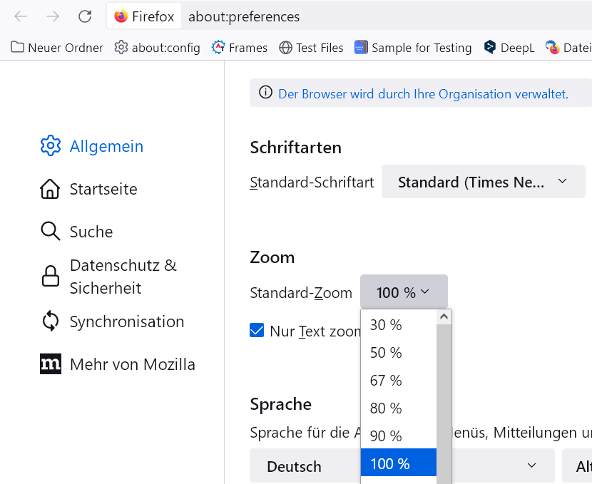 Wenn ich meinen Fuchs öffne, wird dieses immer mit 110 % angegeben.